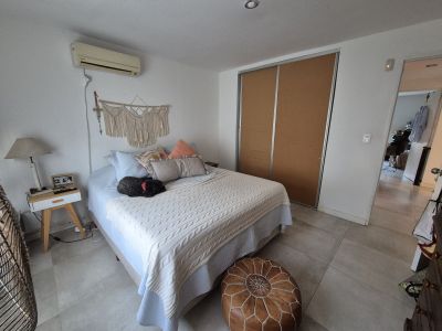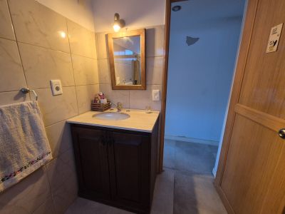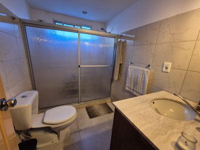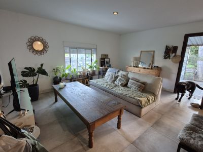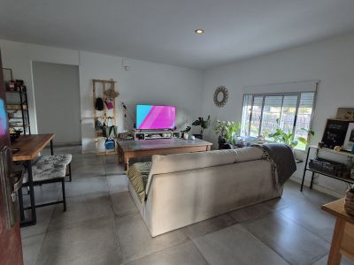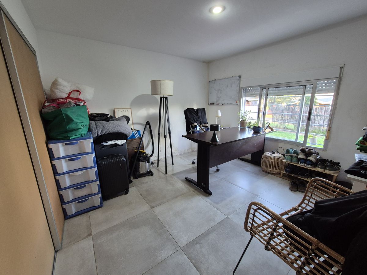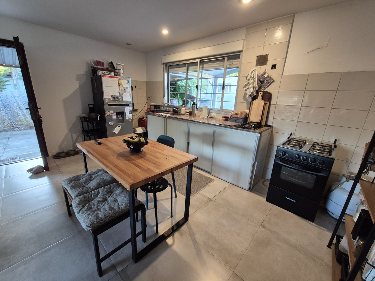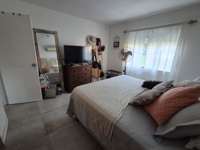 Construcción tradicional, 2 dormitorios uno al frente y el otro hacia el fondo de buenas dimensiones y con placares, living-comedor con cocina integrada de buen espacio. Baño con ducha. Cómodo fondo y cochera para el auto. Aberturas con rejas y persianas.